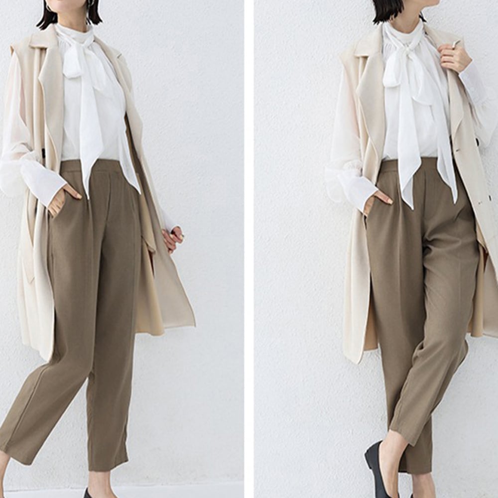 黒パンツ 着やせ オフィスカジュアル ウエストゴム 無地