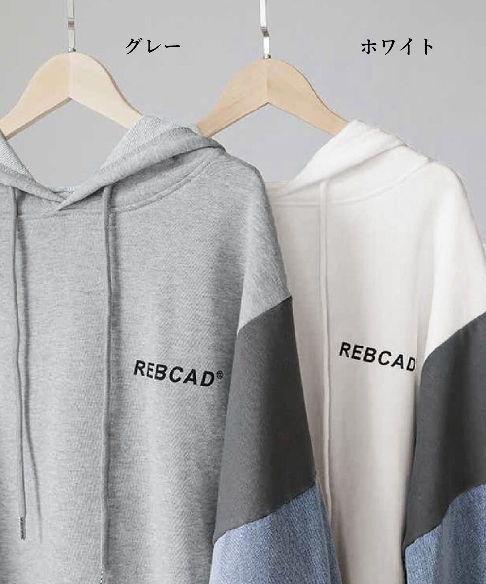 ドッキングパーカー フード付きトレーナー デニム切り替えスウェット 薄手 オーバーサイズトップスドロップショルダー 春秋冬 長袖チュニック カジュアル パーカー トレーナー ベジー VEZY ItemNo.【20395103 】