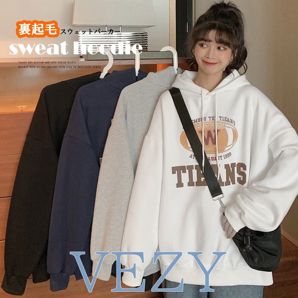 スウェットパーカー 裏起毛 おしゃれ ロゴ プルオーバーパーカー 裏フリース 秋冬 フード付き 長袖トレーナー ゆったり フーディー 10代20代 パーカー トレーナー ベジー VEZY ItemNo.【16638779 】