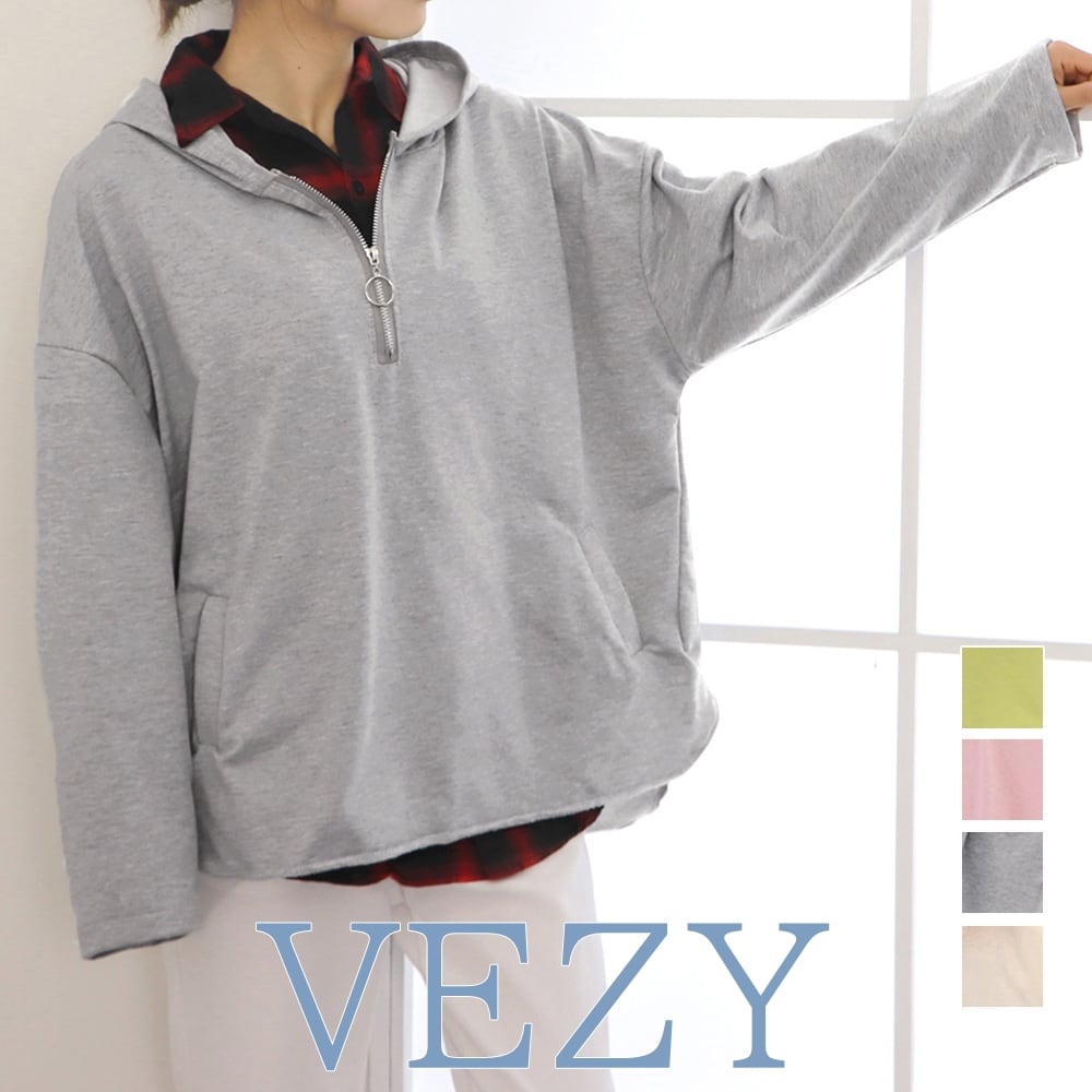 ハーフジップパーカー サイドスリット フーディースウェット ドロップショルダー プルオーバー フード付きトップス 体型カバー ロングトレーナー春秋 パーカー トレーナー ベジー VEZY ItemNo.【18802326 】