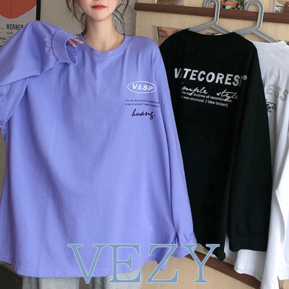 トップス 韓国 オルチャン ロゴトップス Tシャツ ゆったり おしゃれ 韓国ファッション ロング丈 着やせ カットソー 体型カバー オーバーサイズ パーカー トレーナー ベジー VEZY ItemNo.【16068156 】