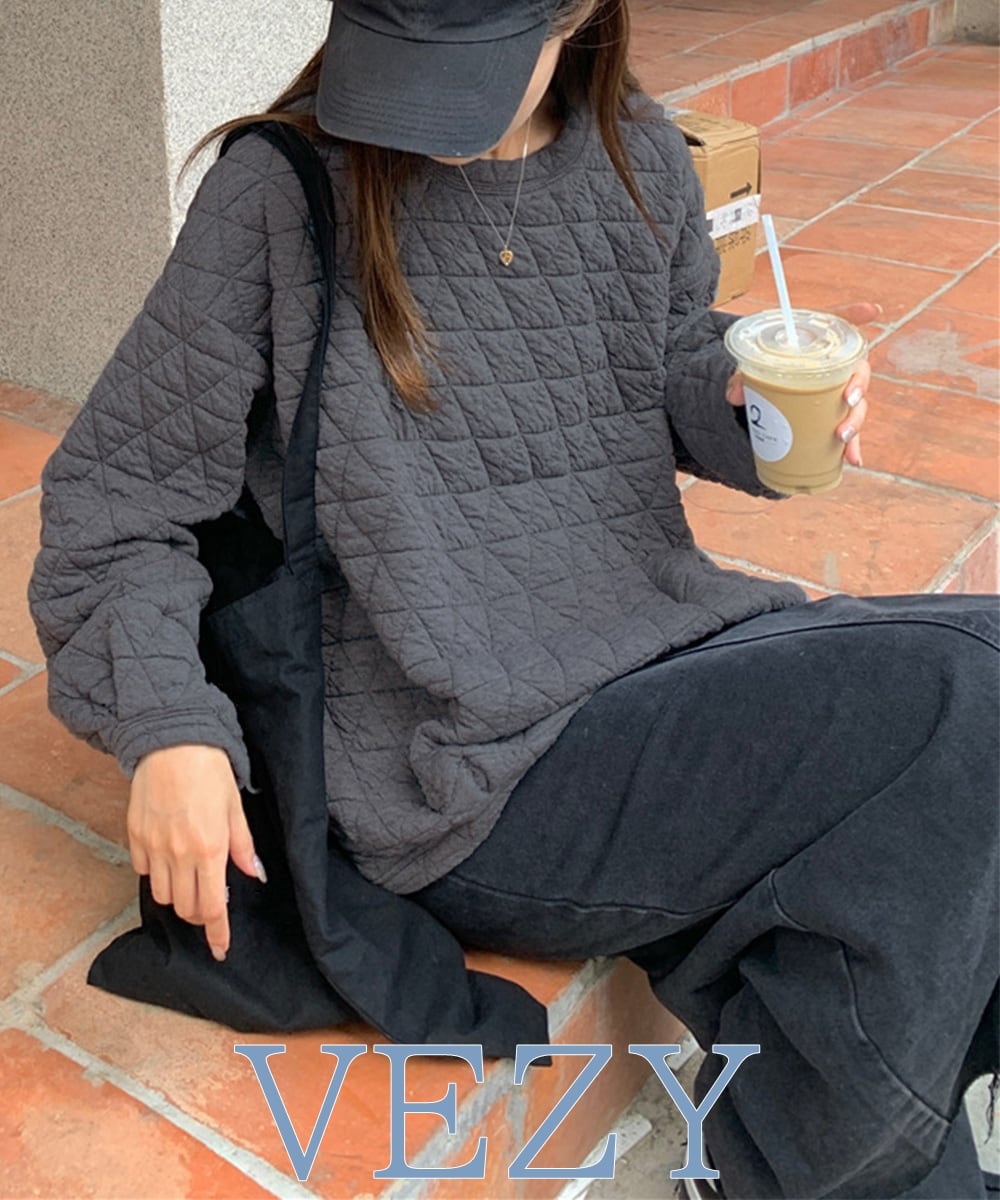 キルティングトレーナー 韓国 中綿入りトップス クルーネックカットソー 体型カバートップス ゆったりスウェットトレーナー ドロップショルダーカジュアル パーカー トレーナー ベジー VEZY ItemNo.【20304231 】