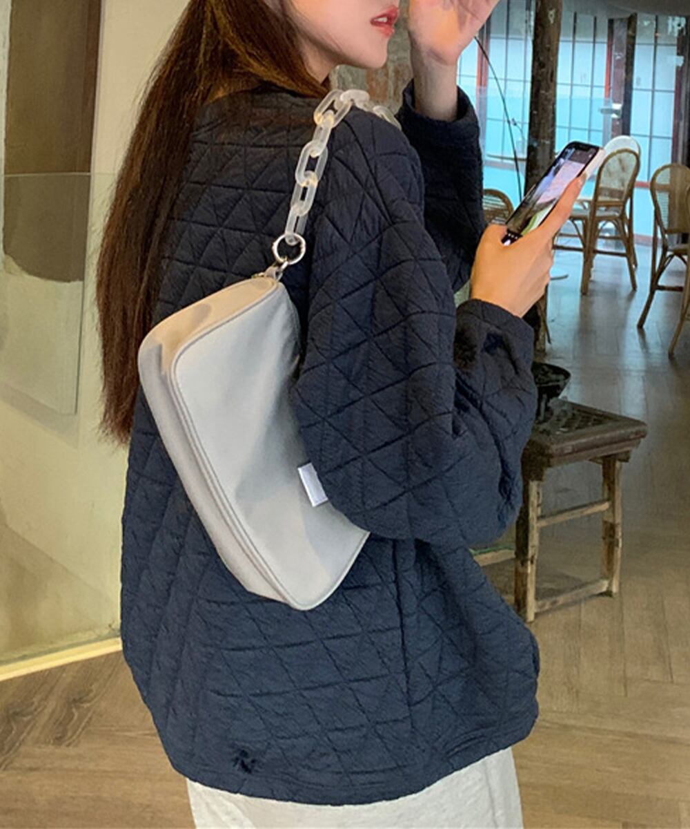 程よい厚みのある中綿入りキルティング仕様が暖かい、ゆったりめサイジングで体型カバーして着やせ