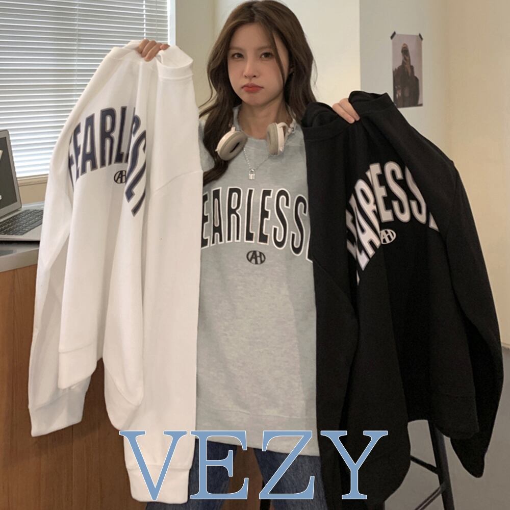 BF風トレーナー 体型カバー スウェット カジュアルトップス 春秋薄手 ゆったり 長袖プルオーバー 韓国風 着やせトップス ロゴ カットソーストリート パーカー トレーナー ベジー VEZY ItemNo.【18881257 】