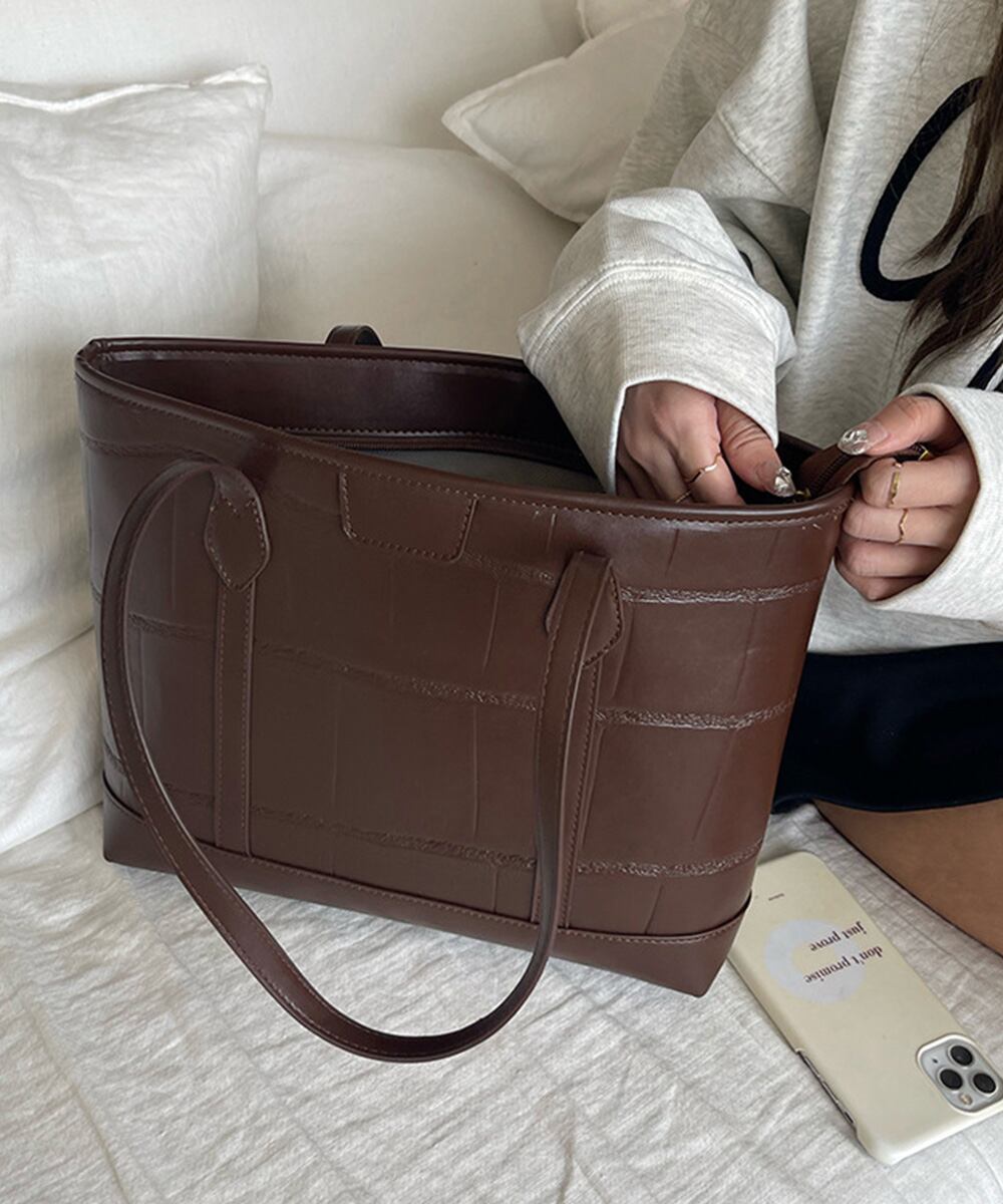 ZIP付きPUトートバッグ 大容量かばん バッグおしゃれ PUレザー肩掛けバッグ A4サイズ 韓国ファッション 大人合皮鞄人気 オフィスカジュアル通勤 バッグ BAG ベジー VEZY ItemNo.【20563862 】