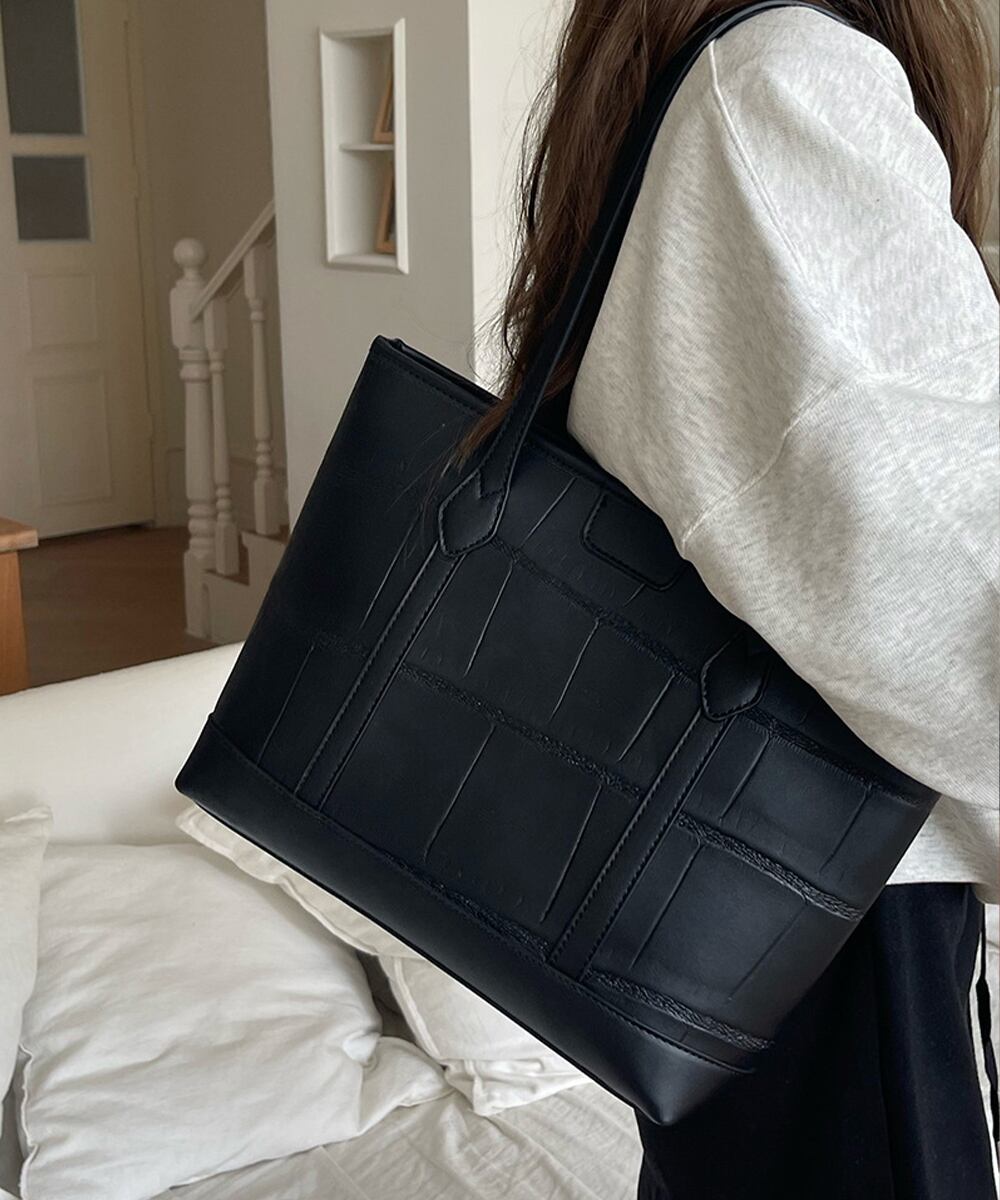 シンプル合皮カバン 肩掛けカバン高見え トート ファスナー