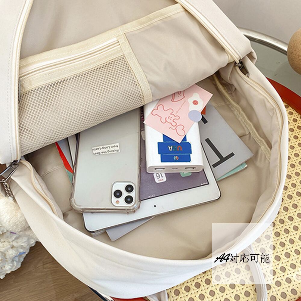メイン収納はA4サイズ対応で、ノートや着替えも入る通勤、通学、ママバッグに安心のサイズ
