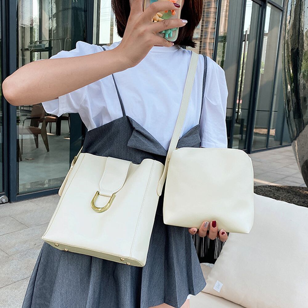 ポーチ付きショルダーバッグ バケツバッグ PUレザー 肩掛けバッグ オフィスカジュアル 斜め掛けバッグ 2way ワンショルダー鞄 縦型 大容量かばん バッグ BAG ベジー VEZY ItemNo.【19170616 】