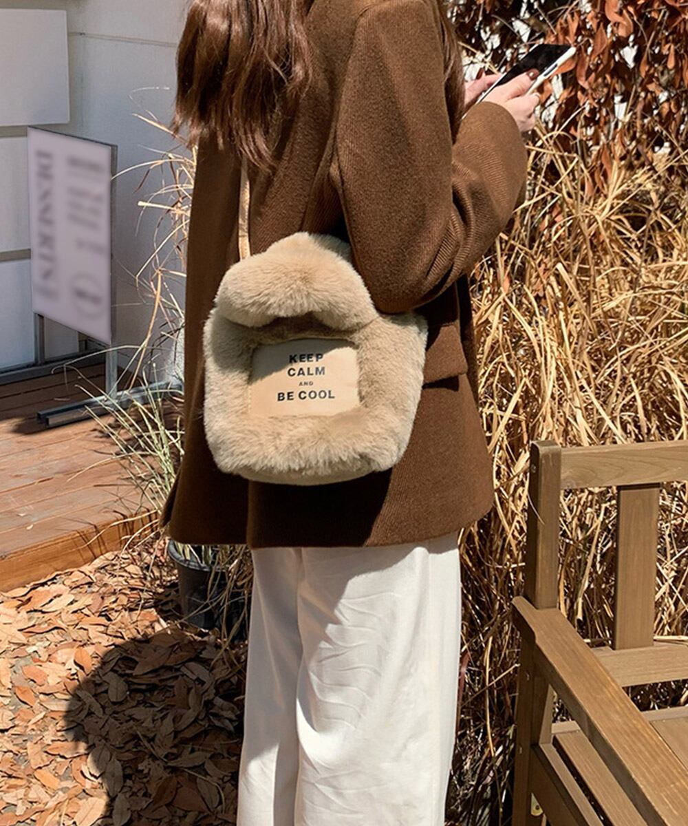 やわらかな手触りのエコファーがバッグを覆い、優雅な雰囲気を演出