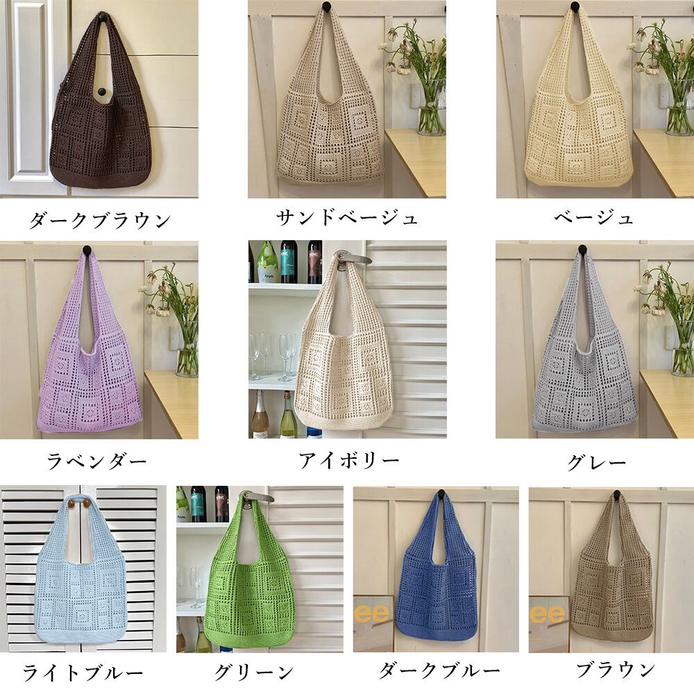 レディース おしゃれ 透かし編みバッグ 軽量 肩掛けバッグ 大容量 a4対応 韓国 ニット編みかばん カジュアル 10色