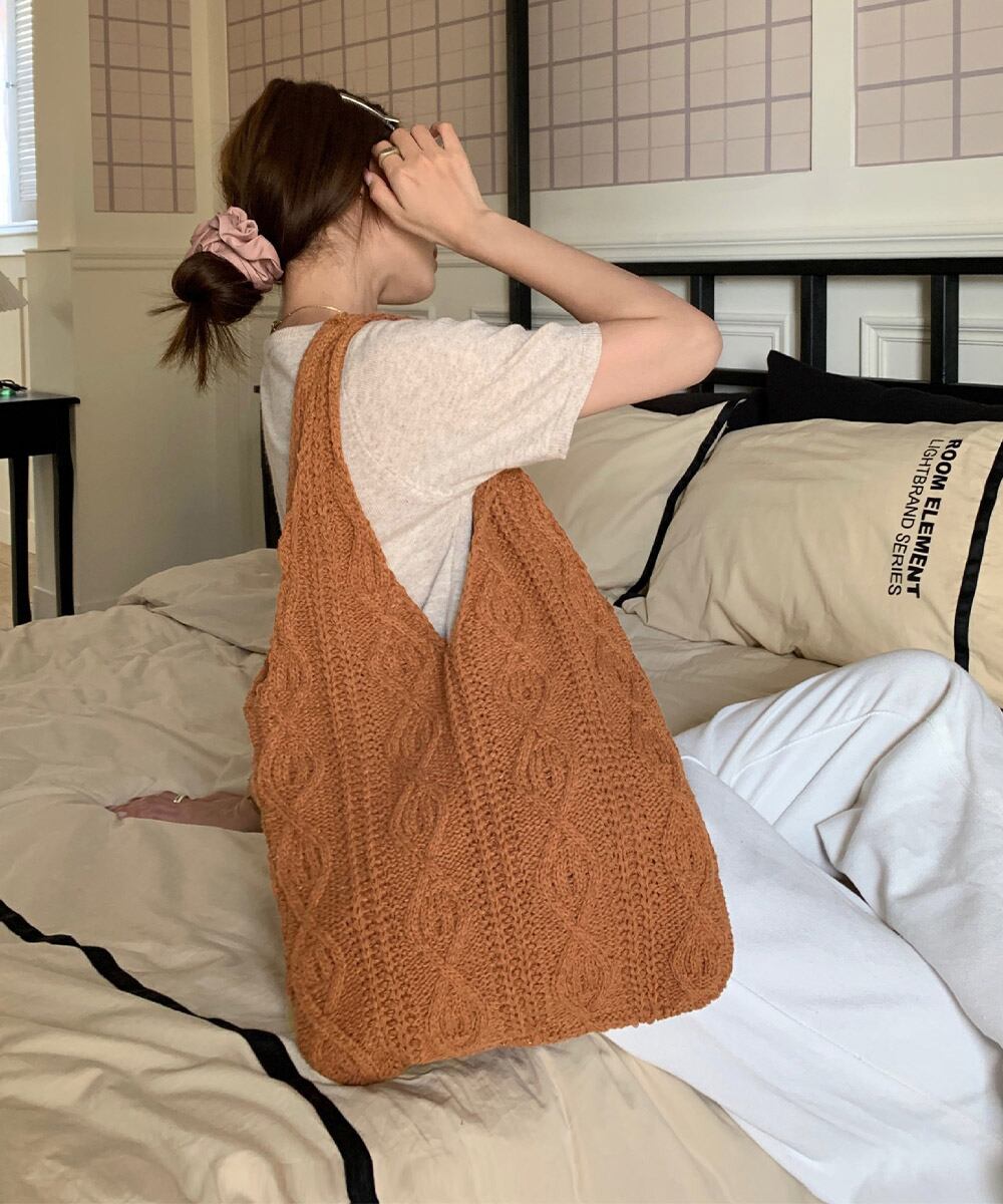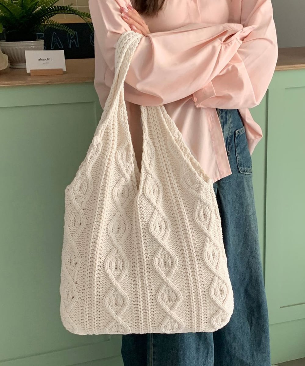 持つだけでこなれ感のあるケーブル編みニット生地のトートバッグ