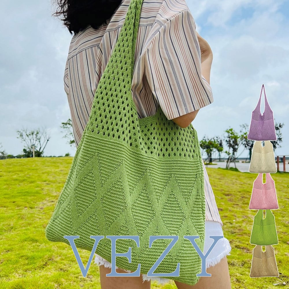 韓国ニットトートバッグ 編みバッグ 新作 ワンショルダーバッグ 透かし編み ニット鞄 軽量 肩掛けカバン 大きめ カジュアル バッグ 大容量 きれいめ バッグ BAG ベジー VEZY ItemNo.【19543056 】