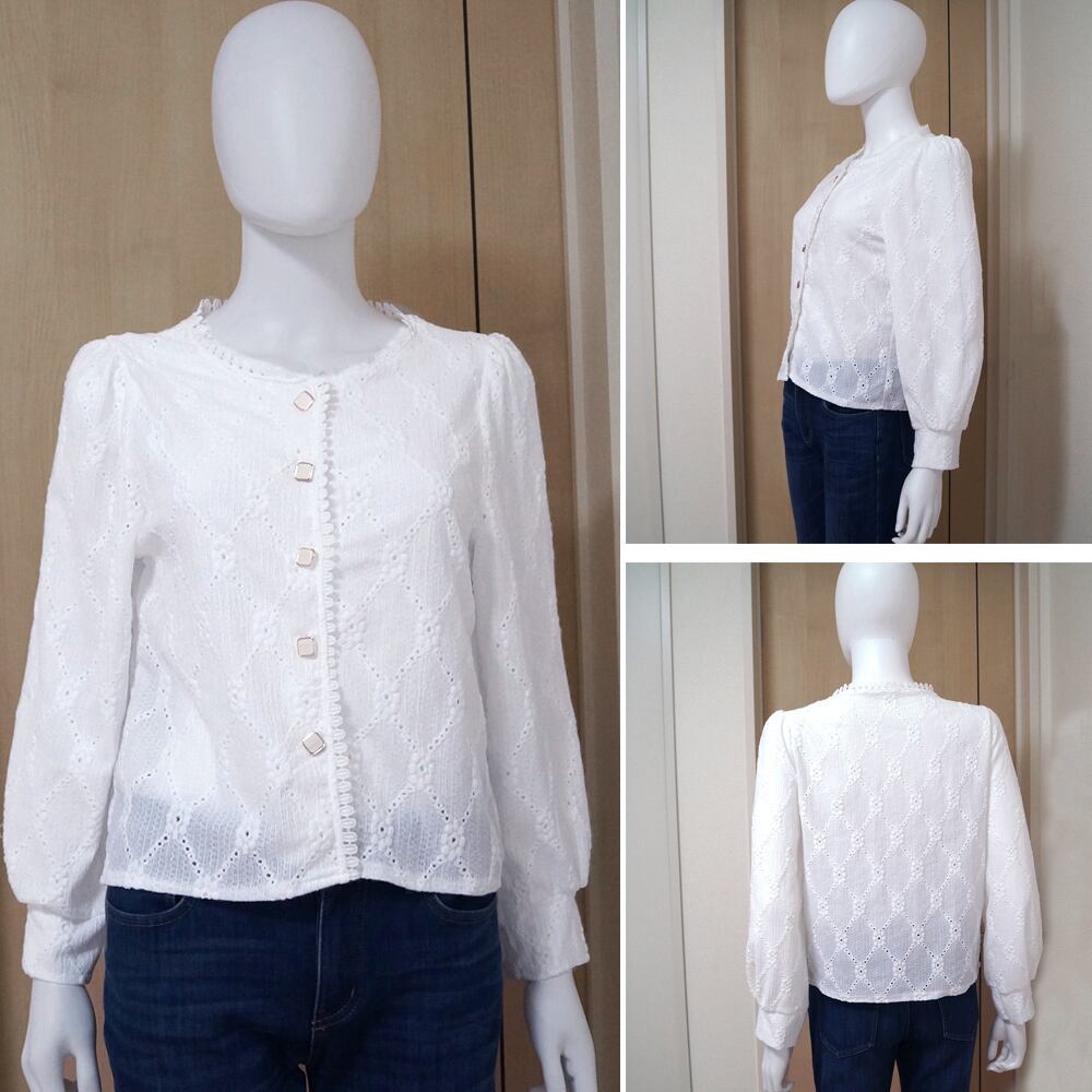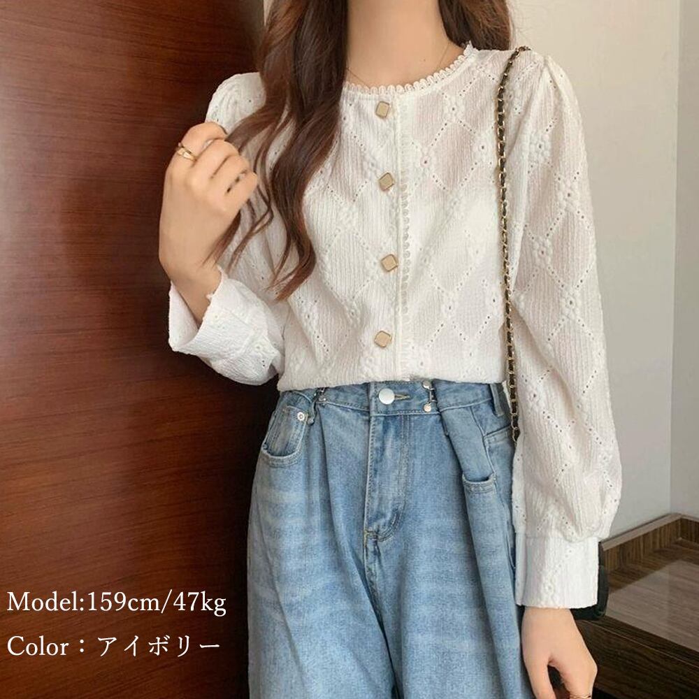 刺しゅうレースブラウス 長袖 シャツブラウス 大人可愛い 前開き おしゃれ トップス ラウンドネック 着回し ブラウス 白 通勤 フロントボタン シャツ ブラウス ベジー VEZY ItemNo.【20024794】