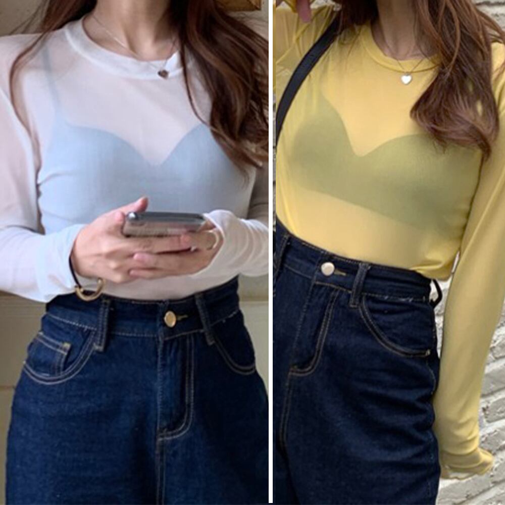 ラウンドネック ブラウス 透け感 韓国ファッション ソフト セクシー 春夏