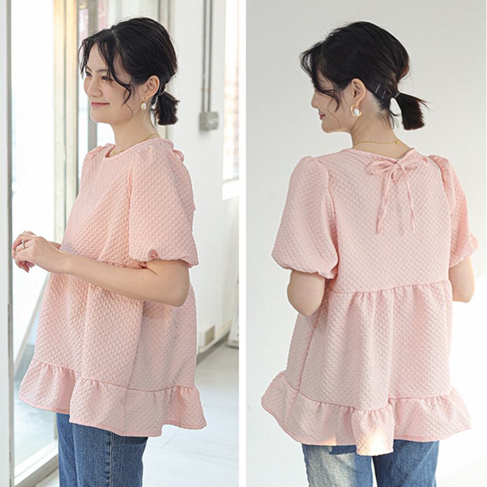 ふんわリとしたボリューム感で品のある女性らしい半袖ティアードトップス