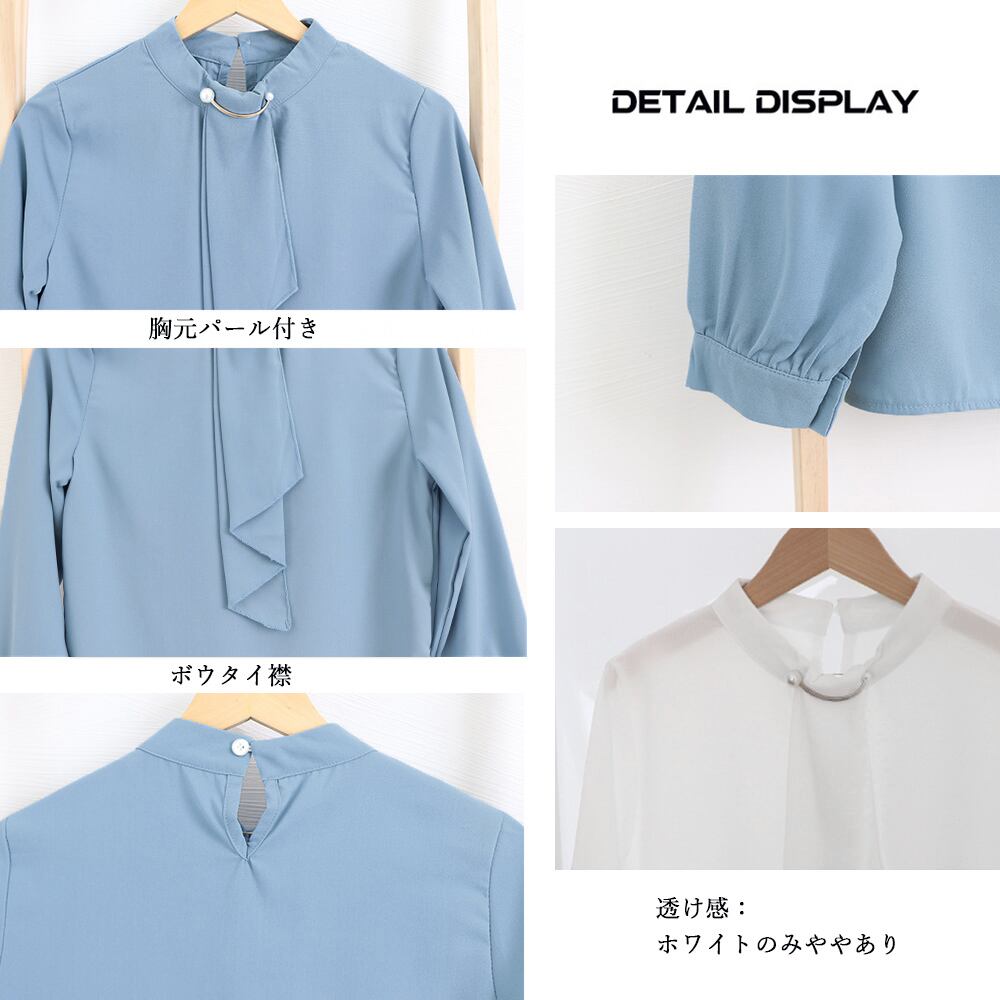 シフォンブラウス 無地 とろみ 胸元パール ボウタイブラウス 白 おしゃれ 上品 大人 トップス 通勤 OL 女性春服