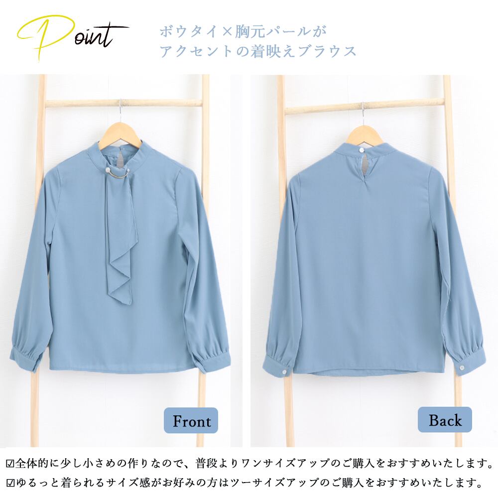 ボウタイ×胸元パールがアクセントの着映えブラウス