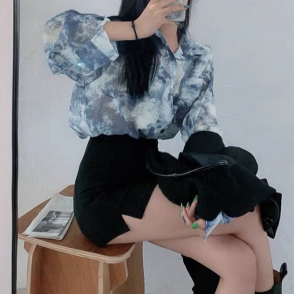 タイダイ柄シアーシャツ シースルー羽織り セクシー シアーカーディガン 長袖 おしゃれ シースルートップス カラー開襟シャツ ムラ染め 透け感ゆったり シャツ ブラウス ベジー VEZY ItemNo.【17804759 】