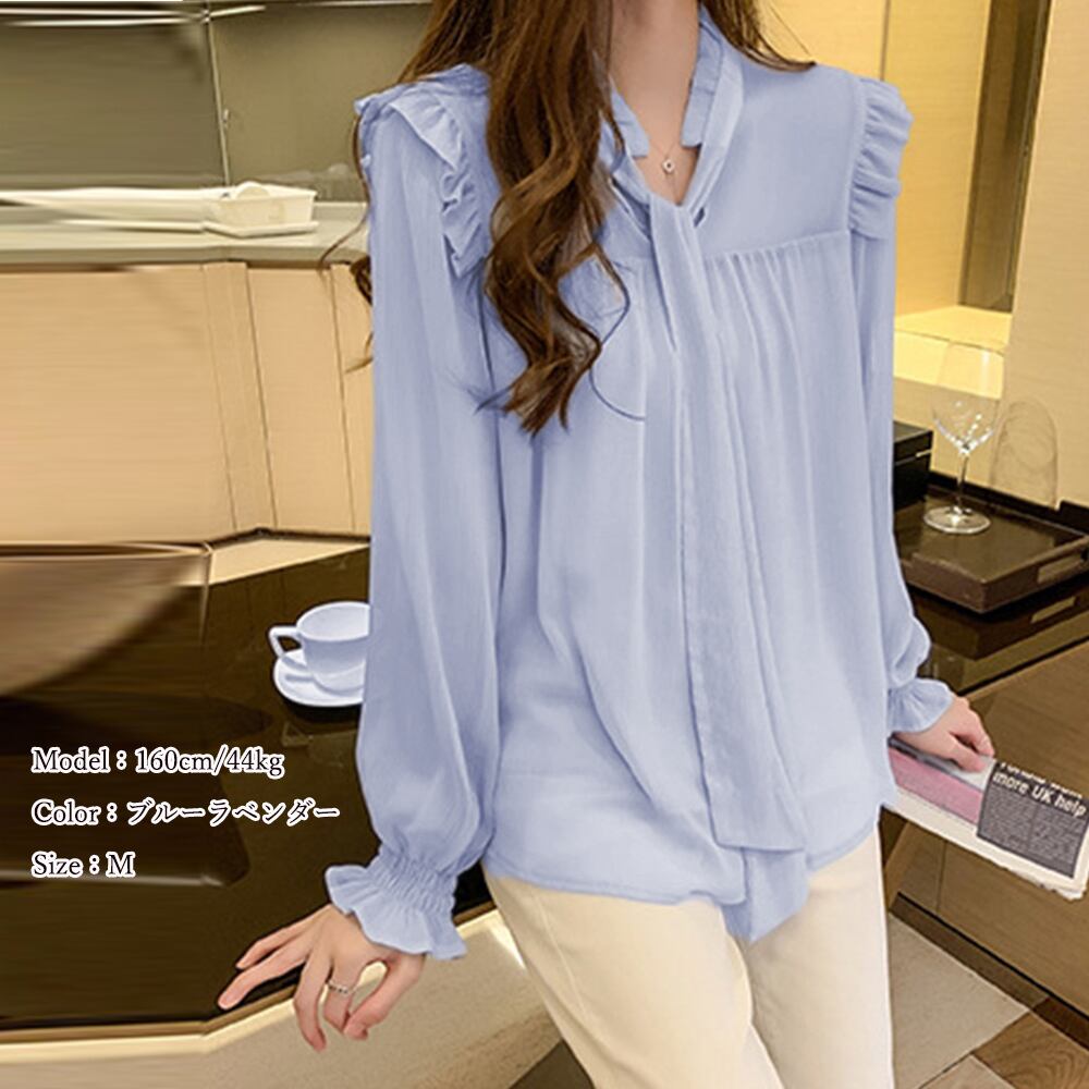 リボンタイブラウス 春夏 シアートップス レディース長袖ブラウス 薄手オフィスカジュアル きれいめ ブラウス 韓国 フリル 着やせ透け感 通勤ブラウス ぽわん袖 シャツ ブラウス ベジー VEZY ItemNo.【17456791 】
