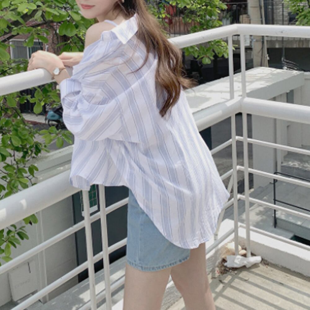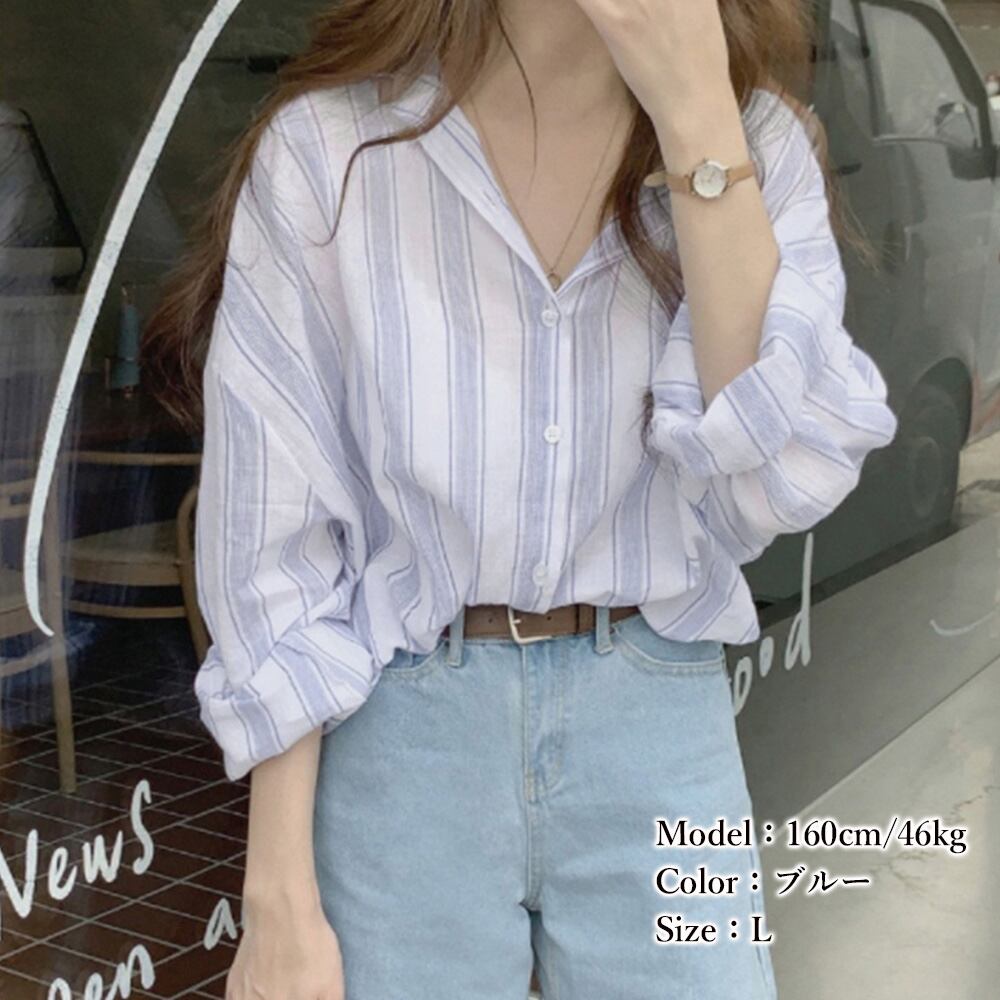 ストライプシャツ カジュアル 春夏 長袖 シャツカーディガン 大人ブラウス 薄手 カジュアル 羽織り UV対策 ゆったり 着やせ Vネック ストリート シャツ ブラウス ベジー VEZY ItemNo.【17402223 】