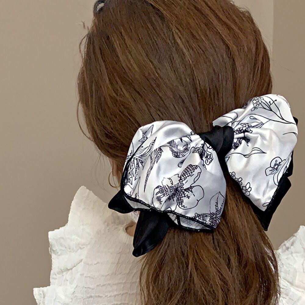 大きめリボン 花柄 髪飾り 蝶々結び 大人可愛い まとめ髪 オフィスカジュアル 女子会 おしゃれ 髪留め 流行り 上品