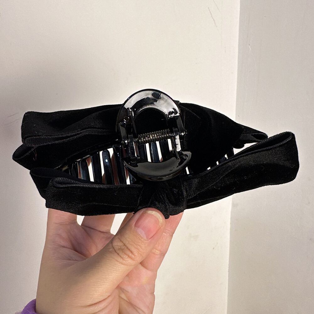 光沢感のあるベルベットで上品な印象になる韓国風ヘアクリップ