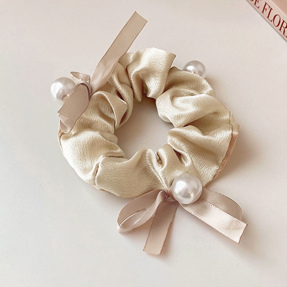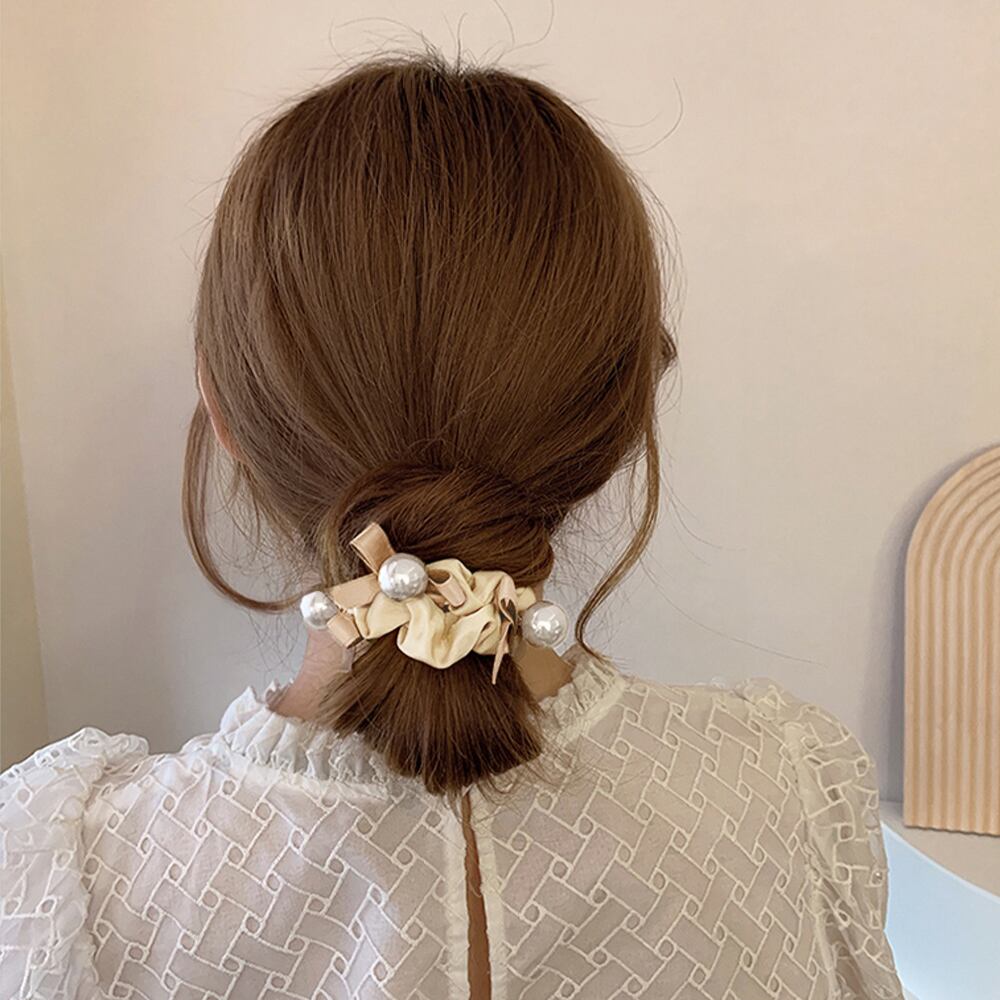 柔らかな光沢が、うしろ姿を女性らしい華やかな雰囲気に導いてくれるシュシュ。