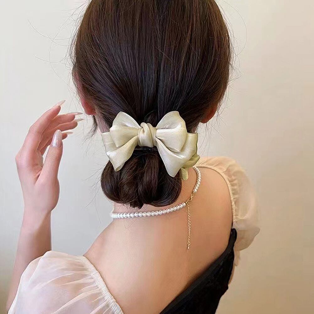 シンプルながらエレガントで女性らしい印象を与えるリボンヘアクリップ