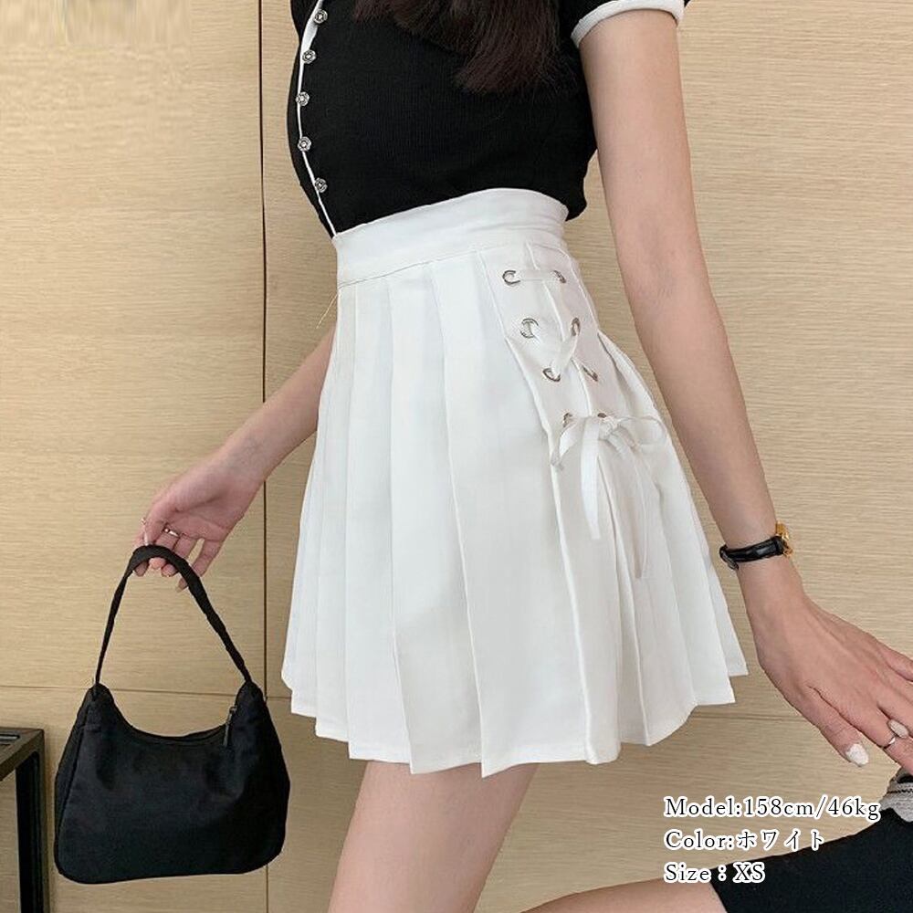 サイドのレースアップが可愛くオシャレなミニプリーツスカート