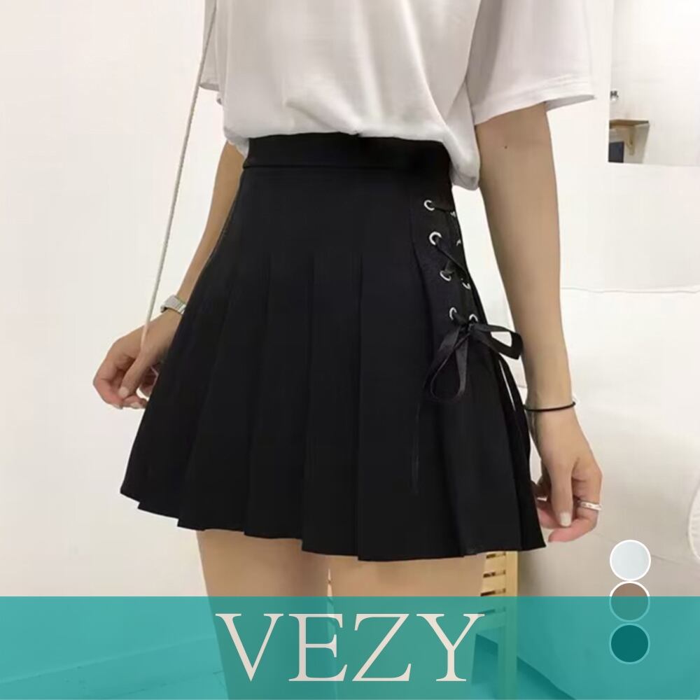 Aライン プリーツスカート レースアップ インナーパンツ付き ミニスカート チラ見せ防止 ハイウェスト スクールスカート 韓国風 ショート丈スカート カジュアル パンツ スカート ベジー VEZY ItemNo.【18930635 】