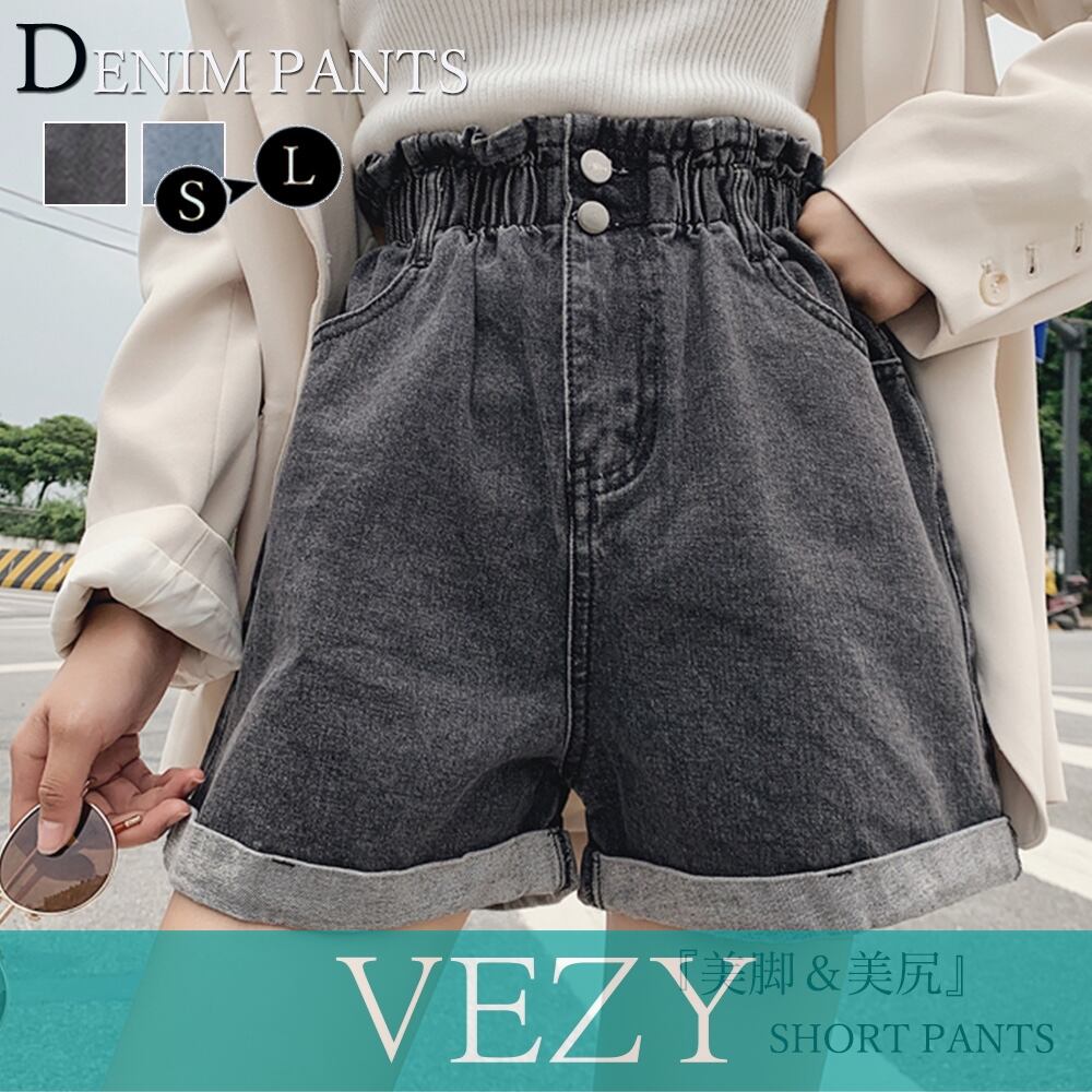 デニムパンツ ハイウエスト ショーパン ロールアップ フロントを飾る釦フライがポイントのデニムショートパンツ パンツ スカート ベジー VEZY ItemNo.【13847499 】