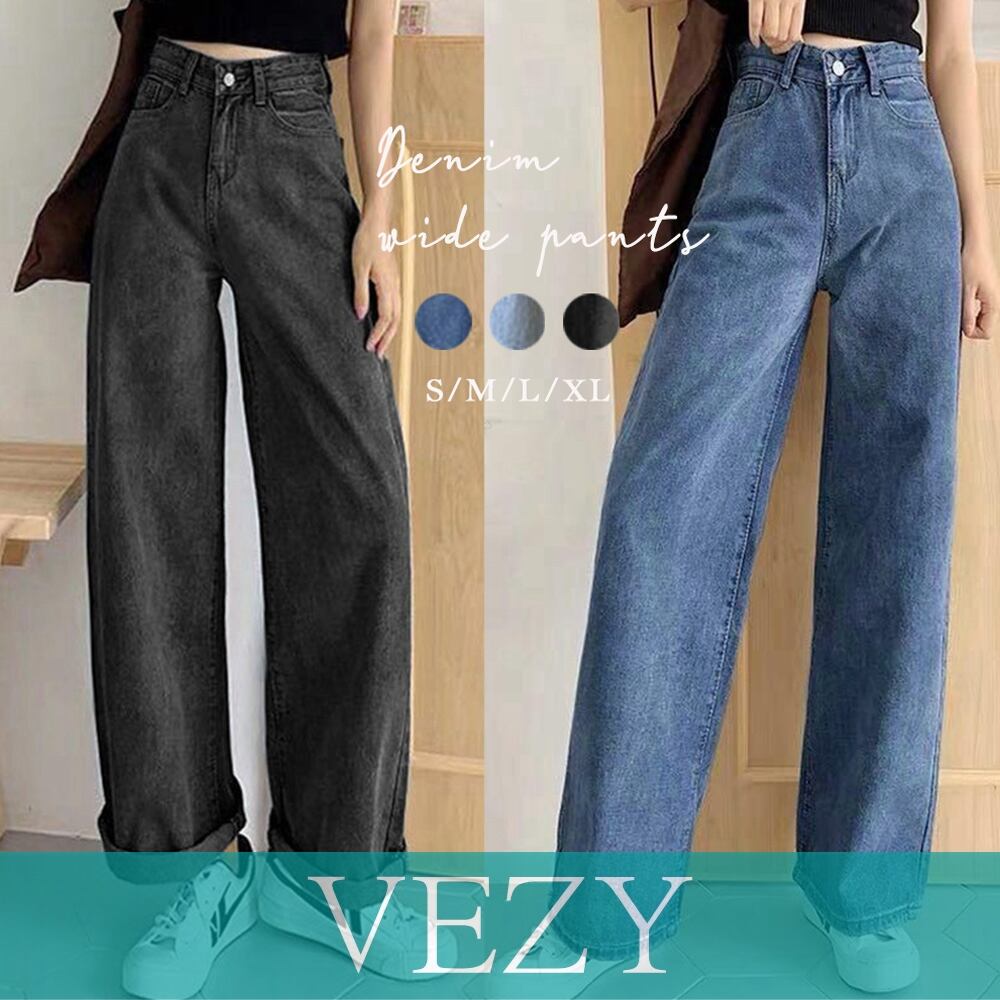 デニムワイドパンツハイウエストロングパンツ ストレートパンツ カジュアル ズボン 韓国風 ジーンズ ゆったり ボトムス 春夏 ロールアップ パンツ スカート ベジー VEZY ItemNo.【17571009 】