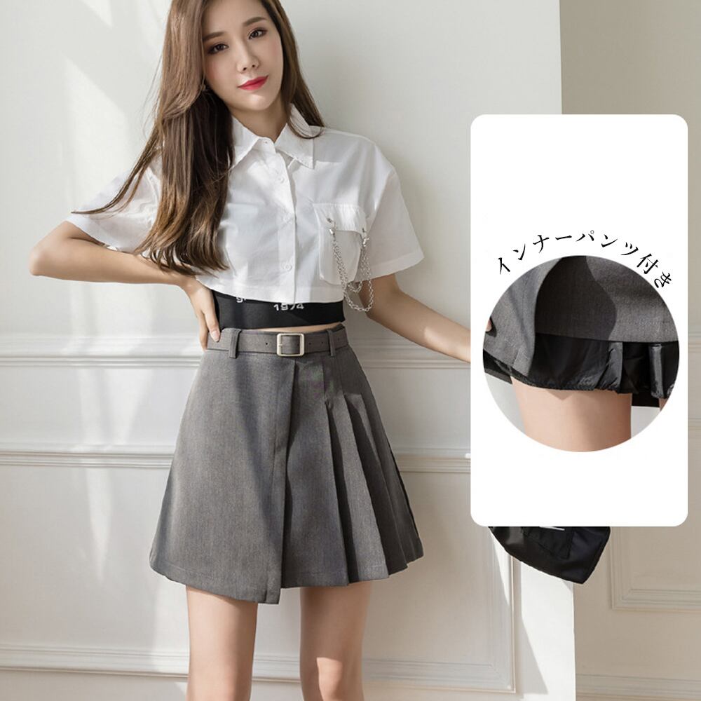 ハイウエスト Aライン ミニスカート 着やせ 韓国ファッション ショート丈 台形スカート インナーパンツ付き