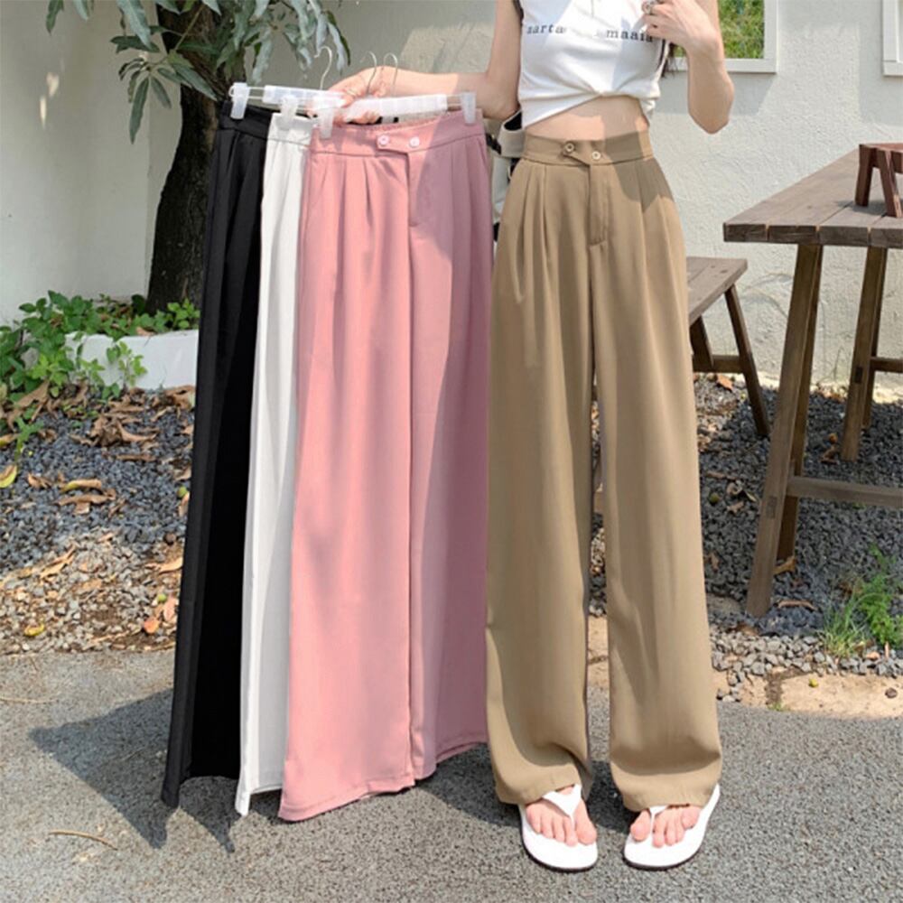 ドレープストレートパンツ レディース美脚 低身長向け セミワイドパンツ タック入り ウエストゴムイージーパンツ スリム体型 ハイウエスト韓国ボトムス カジュアル パンツ スカート ベジー VEZY ItemNo.【19027451 】