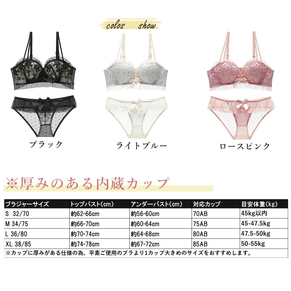 脇高 花柄レースブラジャー 透け透けショーツ 小胸ランジェリーセット ノンワイヤーフリルブラ バスト盛れる パンティ女性