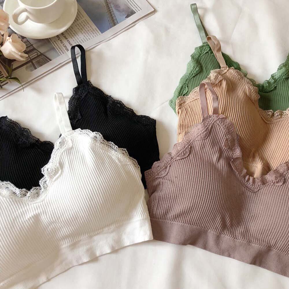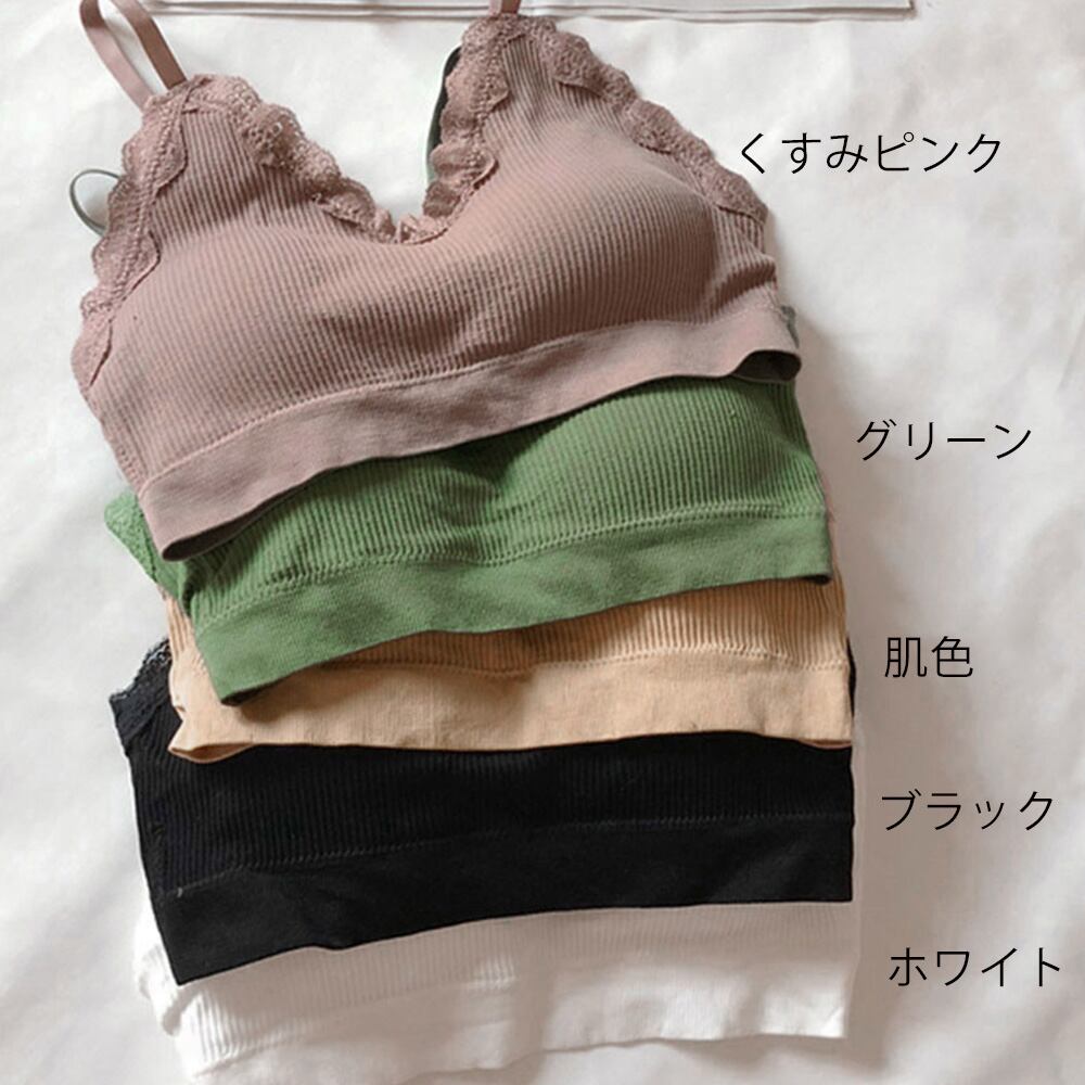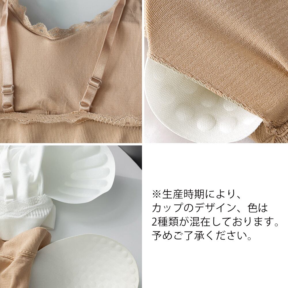 レディース パッド付き ノンワイヤー キャミブラ レースインナー リブベアトップ ストレスフリー